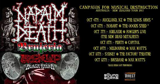 Napalm Death have announced a Australian/New Zealand tour with Brujeria, Lock Up, and Black Rheno. Check out the dates below.