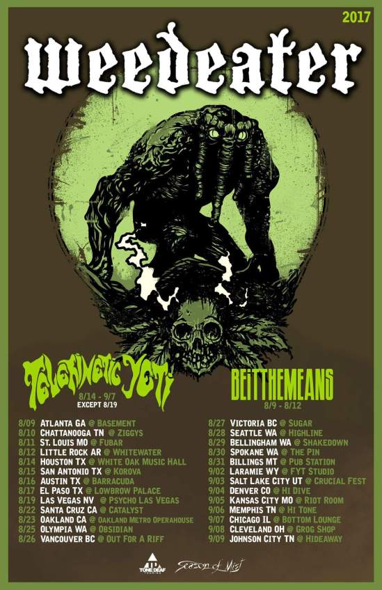 Weedeater have announced a headlining tour. Telekinetic Yeti and Beitthemeans will serve as support on select dates.