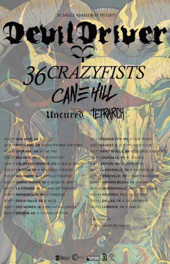 DevilDriver have announced a U.S. tour with 36 Crazyfists, Cane Hill, Uncured, and Tetrarch. Check out the dates below.