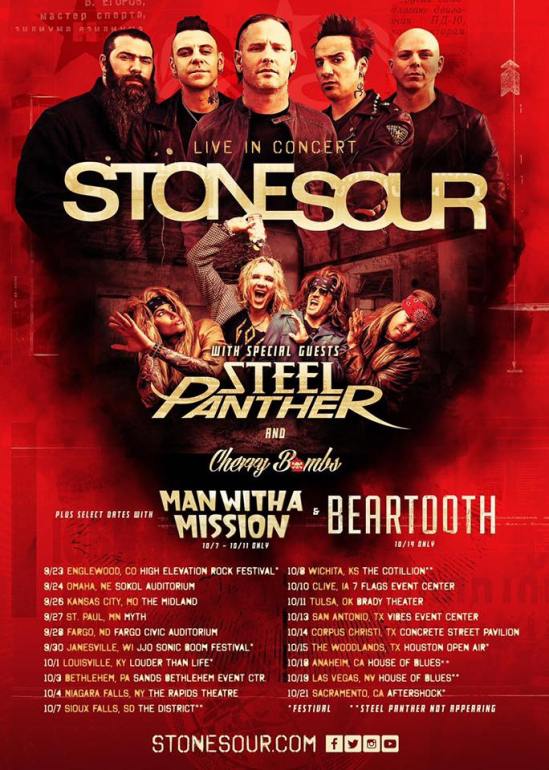Stone Sour have announced a fall tour with Steel Panther and Cherry Bombs. Man With A Mission and Beartooth will also perform on select dates.