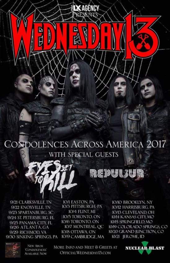 Wednesday 13 has announced a fall tour with Eyes Set To Kill and Repulsur. Check out the dates below.