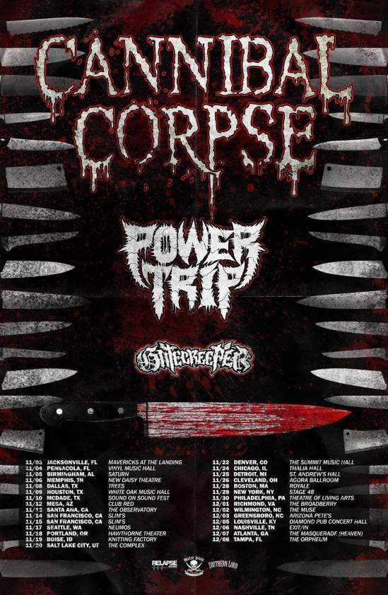 Cannibal Corpse have revealed that they have officially finished their new album, which is expected to be released this fall. In other news, the band have also announced a U.S. tour with Power Trip and Gatecreeper.