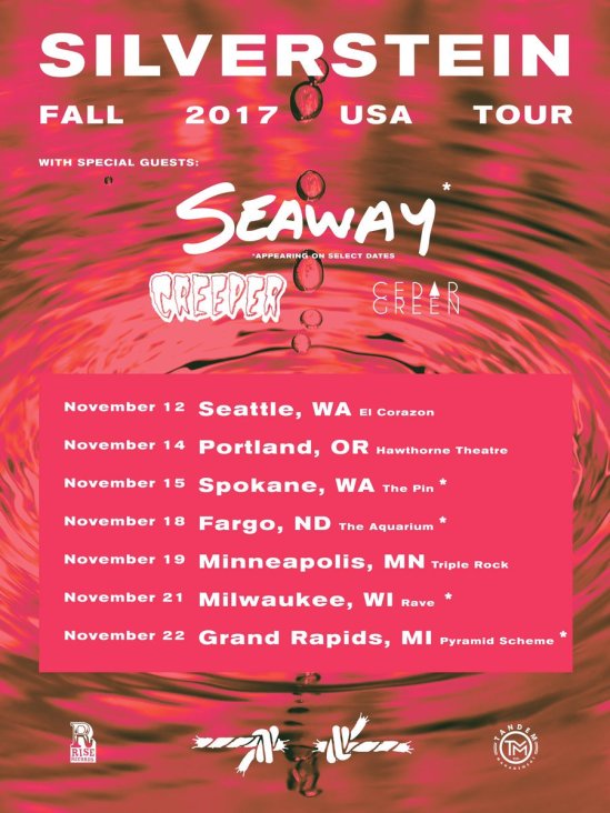 Silverstein have announced some November U.S. shows with Seaway, Creeper, and Cedar Green. Check out the dates below.