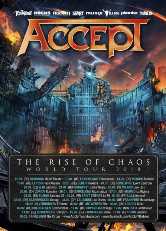 Accept have announced a 2018 European tour. The band will be touring in support of their new album “The Rise Of Chaos,” which will be released on August 4.