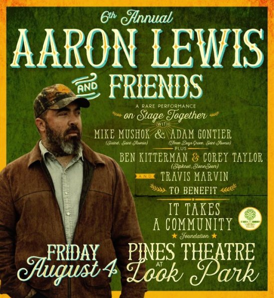 Staind’s Aaron Lewis has announced that his sixth annual “Aaron Lewis Invitational Charity Golf Tournament” will take place on August 5 at Crumpin-Fox Golf Course in Bernardston, Massachusetts. That will be preceded by the “Aaron Lewis And Friends” benefit concert the night before at Pines Theater at Look Park in Northampton, Massachusetts. The following guests have been booked: Mike Mushok (Staind, Saint Asonia), Adam Gontier (ex-Three Days Grace, Saint Asonia), Ben Kitterman, Corey Taylor (Slipknot, Stone Sour), and Travis Marvin. These events will help raise money for Lewis’ nonprofit organization It Takes A Community Foundation.