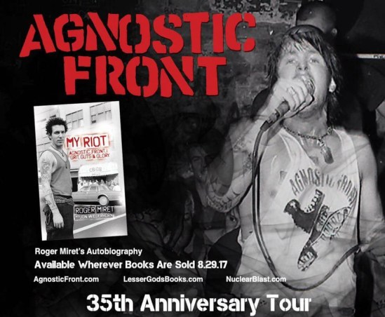Agnostic Front will be celebrating their 35th anniversary with a U.S. tour. You can see the dates for that below. On another note, Roger Miret’s new book “My Riot: Agnostic Front, Grit, Guts & Glory” will be out on August 29.