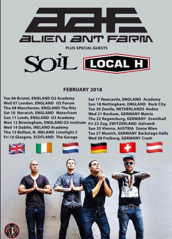 Alien Ant Farm have announced a 2018 European/UK tour with SOiL and Local H. Check out the dates for that below.