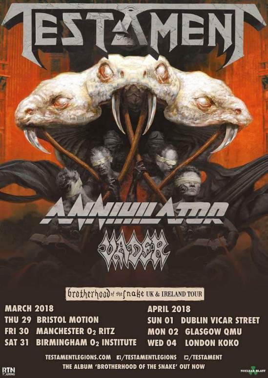 Testament have announced a UK/Ireland tour with Annihilator and Vader. Here’s the dates: