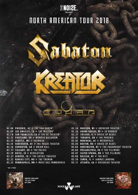 CyHra (ex-In Flames/Amaranthe/Shining, etc.) have been added to Sabaton and Kreator‘s upcoming North American tour. Check out the dates for that trek below.