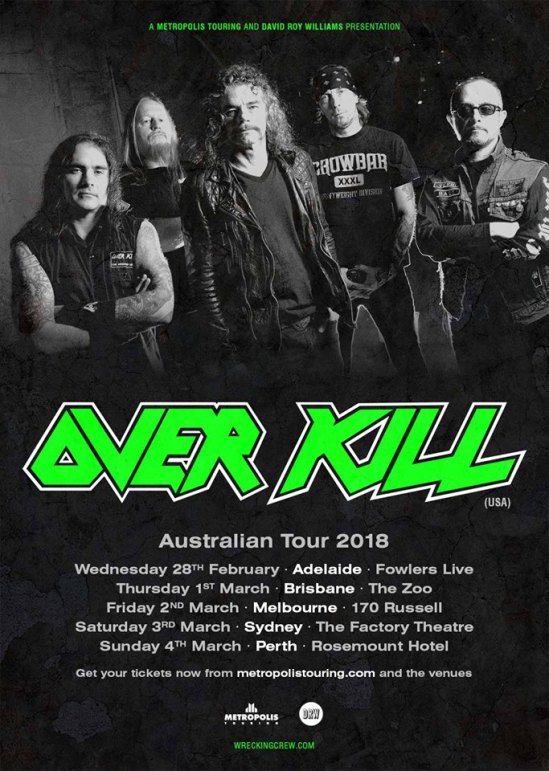 Overkill will soon be hitting the road on an Australian tour. Here’s the dates for that: