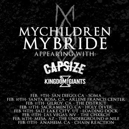 Mychildren Mybride have announced a February tour with Capsize and Kingdom Of Giants. Here’s the dates for that: