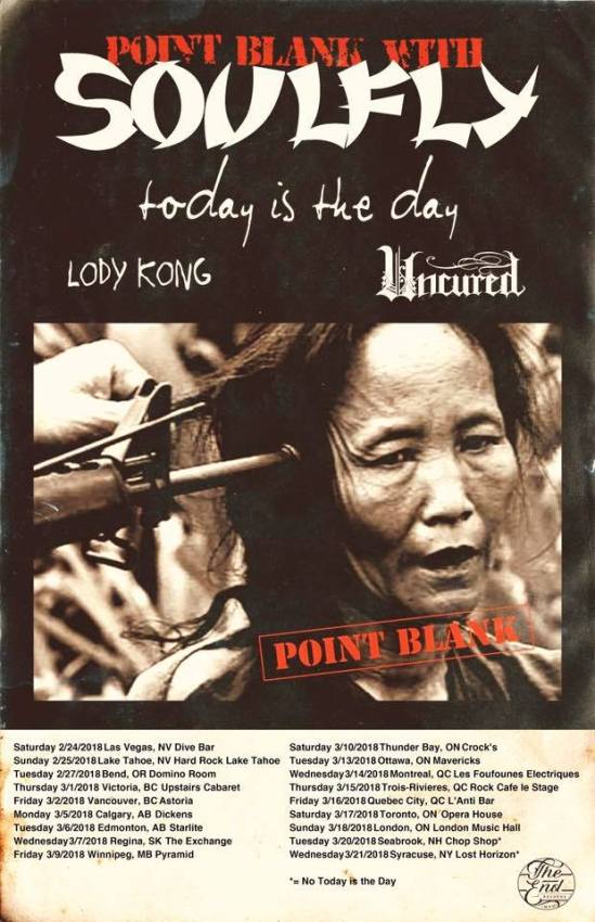 Soulfly will perform Nailbomb‘s “Point Blank” once again on an upcoming tour with Today Is The Day, Lody Kong, and Uncured. You can see the dates for that run below.