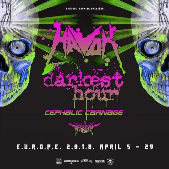 Havok have announced a European/UK tour with Darkest Hour, Cephalic Carnage, and Harlott. Check out the dates for that run below.