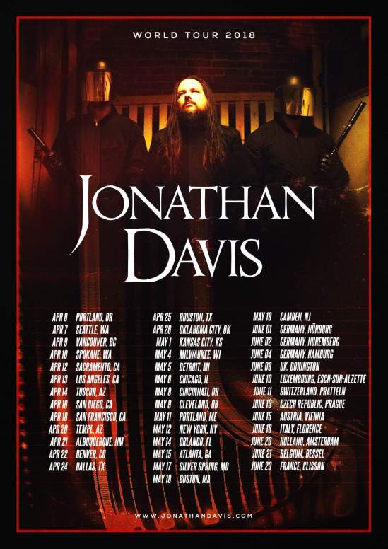Jonathan Davis (Korn) has announced a 2018 solo world tour. You can see the dates for that below. If you missed it, the first single from from his upcoming solo album, “What It Is,“ can be found HERE.