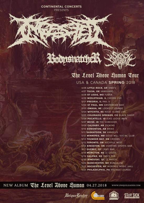 Ingested have announced a North American headlining tour with Bodysnatcher and Signs Of The Swarm. The band will be touring in support of their new album “The Level Above Human“ (out April 27).