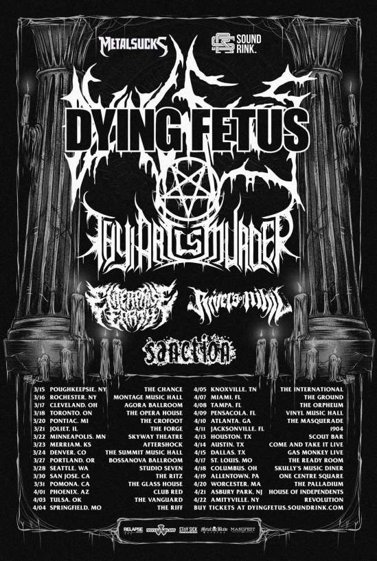 Dying Fetus, Thy Art Is Murder, Enterprise Earth, Rivers Of Nihil, and Sanction have announced a 2018 tour. You can see the dates for that run below.