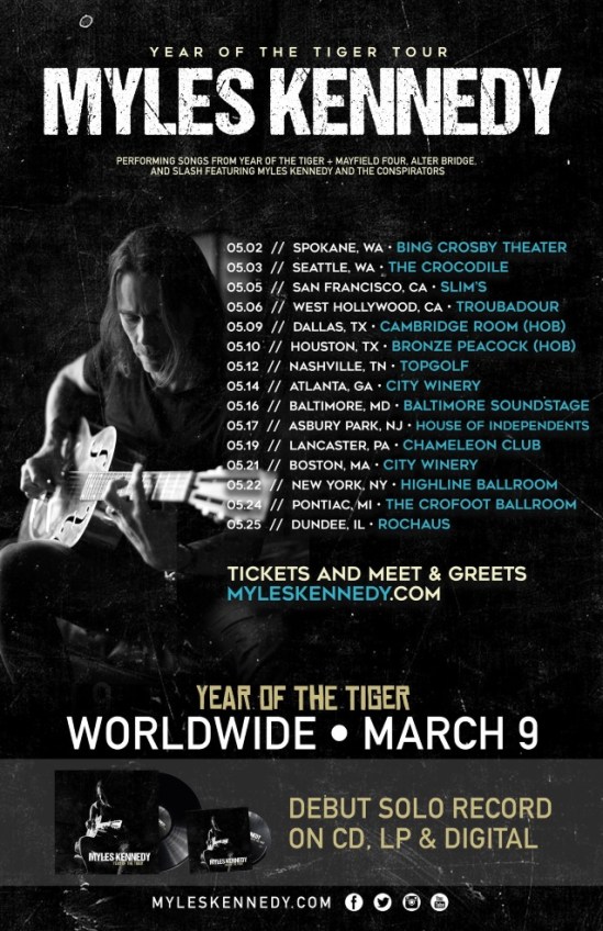 Myles Kennedy (Alter Bridge, etc.) has announced a 2018 U.S. tour. He will be touring in support of his new solo album “Year Of The Tiger,” which will be released on March 9.