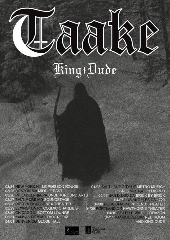 King Dude has announced that he will no longer be opening for Taake on their North American tour. His decision comes as a result of the recent allegations of Nazism against Taake.