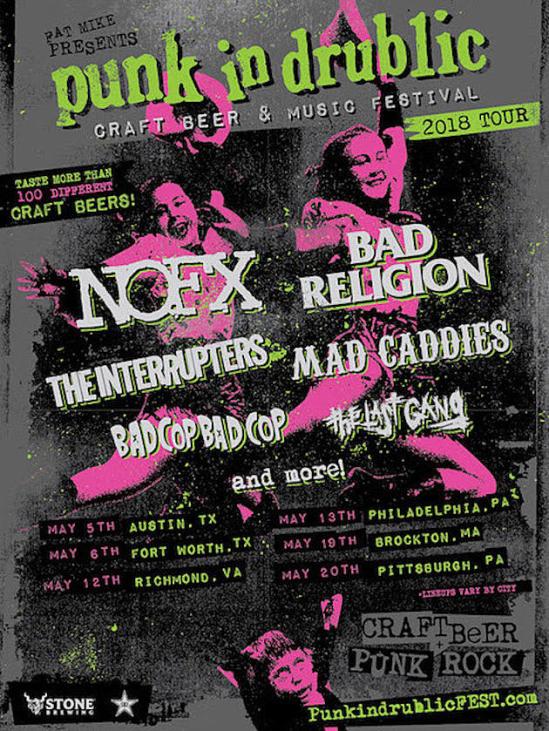 NOFX’s Fat Mike has announced some 2018 Punk in Drublic Craft Beer & Music Festival dates. The frontman has joined forces with Synergy Global Entertainment and Brew Ha Ha Productions for the trek, which will feature music and up to four hours of craft beer tastings. Artists set to appear include: NOFX, Bad Religion, The Interrupters and Mad Caddies. Bad Cop / Bad Cop and The Last Gang will also appear at select shows. Fat Mike and Stone Brewing’s limited NOFX Punk in Drublic Hoppy Lager will now return for these dates, and will also be available in California. If your interested in finding it, you can use this beer finder. Here’s where you can catch the festival this time around: