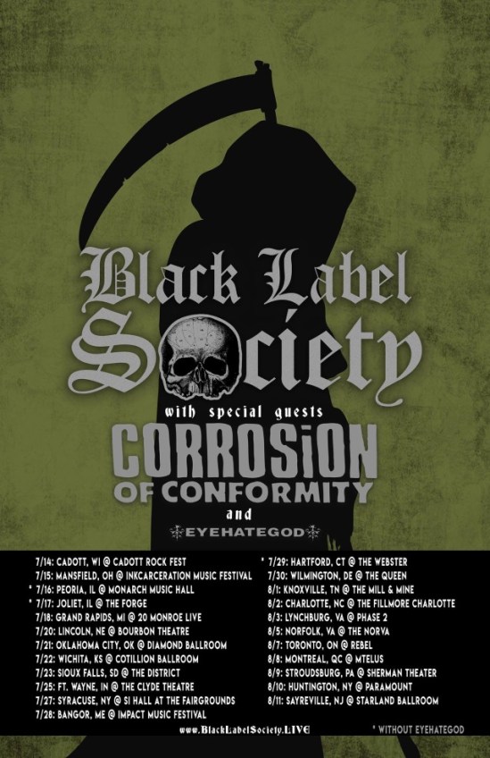 Black Label Society have announced another headlining tour with Corrosion Of Conformity and Eyehategod. Telekinetic Yeti will also perform on select dates when Eyehategod are not present.