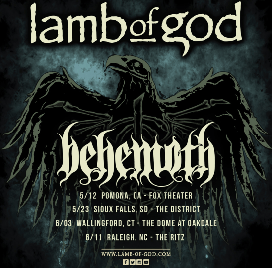 Lamb Of God will be playing some headlining shows with Behemoth around their tour with Slayer. Here’s the dates: