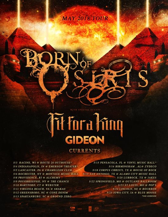 Born Of Osiris have announced a May headlining tour. Fit For A King, Gideon, and Currents will serve as support.