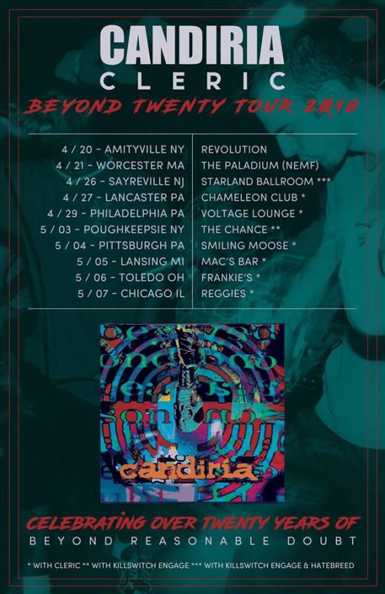 Candiria have announced a “Beyond Reasonable Doubt“ 20th anniversary tour. Cleric will serve as support on most dates.