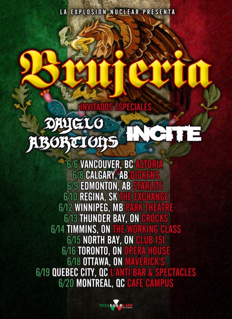 Brujeria have announced a Canadian tour with Dayglo Abortions and Incite. The band will once again be joined by “Orange Is The New Black” star Jessica Pimentel (Alekhine’s Gun).