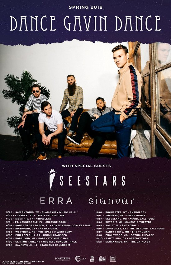 Dance Gavin Dance have announced a spring tour with I See Stars, ERRA, and Sianvar. The band will touring in support of their new album, “Artificial Selection,” which is expected to be released on June 8.