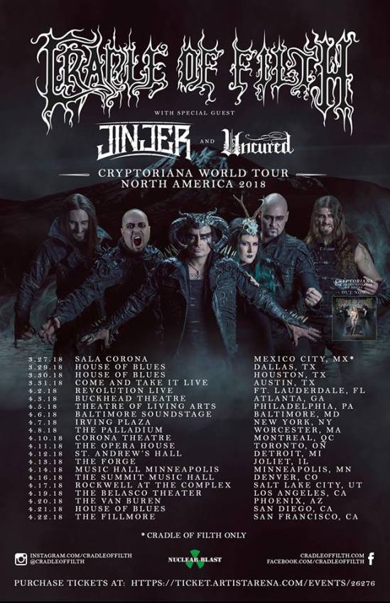Jinjer will be missing the Texas dates of their North American tour with Cradle Of Filth and Uncured due to visa issues. Shattered Sun have been recruited to fill in for them.