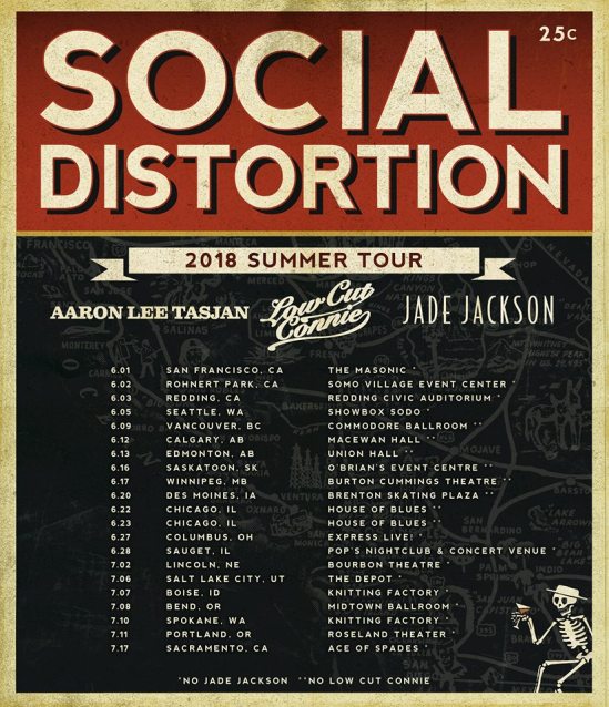 Social Distortion have announced a headlining North American tour. Aaron Lee Tasjan, Low Cut Connie, and Jade Jackson will serve as support on select dates.