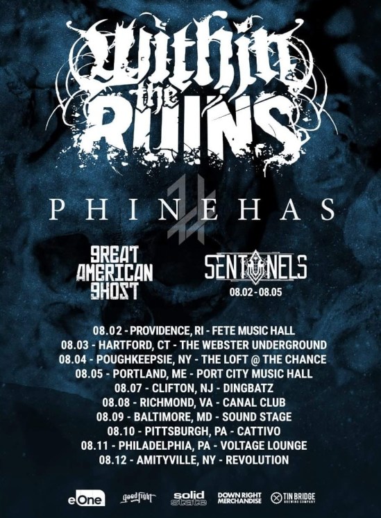 Within The Ruins have announced a summer tour with Phinehas and Great American Ghost. Sentinels will also appear on select dates. This run will be Within The Ruins‘ first with new frontman Steve Tinnon.