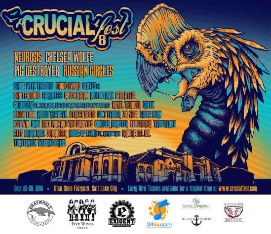 The lineup has been revealed for the 2018 Crucialfest. That event will take place at the Utah State Fairpark in Salt Lake City, UT on September 28-29, and it will include the following: Neurosis, Chelsea Wolfe, Pig Destroyer, Russian Circles, Dance With The Dead, Magic Sword, Slaves (UK), Dan Terminus, Earthless, Chuck Ragan, Mutoid Man, Dem Atlas, Shredders (feat. P.O.S., Sims, Lazerbeak & Paper Tiger of Doomtree), Royal Thunder, Dalek, Black Tusk, Amigo The Devil, Street Sects, Cult Leader, Zig Zags, Eagle Twin, Iceburn, Done, Max Pain And The Groovies, Conquer Monster, Telepathiq, Tamerlane, Exes, Braing Bagz, Sunchaser, House Of Lewis (feat. Rhyme Time), Sangre Del Sol, and Turtleneck Wedding Dress.