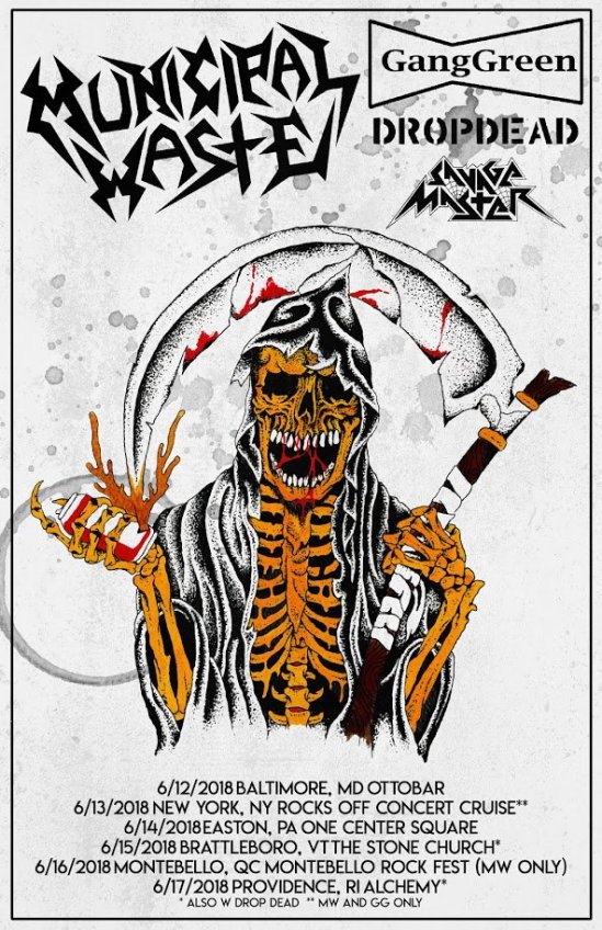 Municipal Waste have announced a June East Coast tour. Dropdead, GangGreen, and Savage Master will serve as support at select shows. Here’s the dates: