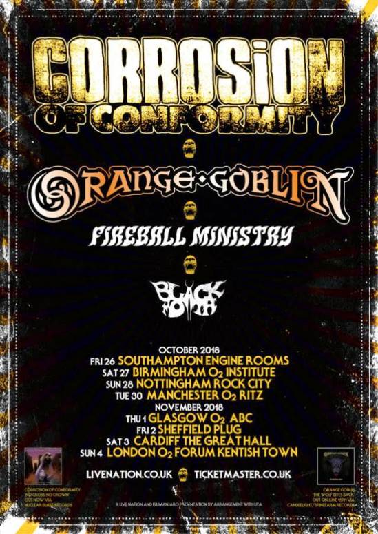 Corrosion Of Conformity have announced a UK tour with Orange Goblin, Fireball Ministry, and Black Moth. Here’s the dates: