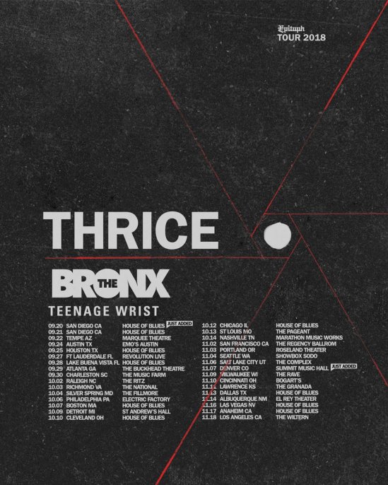 Thrice have added two more dates to their tour with The Bronx and Teenage Wrist. They include new stops in San Diego and Denver.