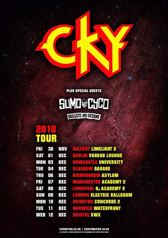 CKY have announced a UK/Ireland tour with Sumo Cyco and Bullets And Octane. Here’s the dates: