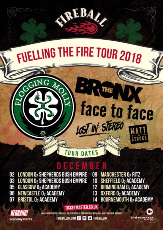 The Bronx have been added to the 2018 Fireball “Fuelling The Fire” UK tour with Flogging Molly, Face To Face, and Lost In Stereo. Here’s the dates for that run: