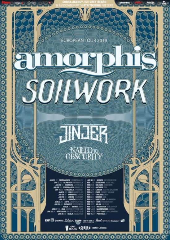 Amorphis and Soilwork have announced a co-headlining European/UK tour. Jinjer and Nailed To Obscurity will serve as support.