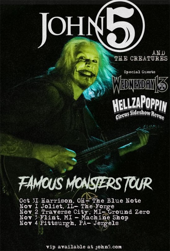John 5 has announced some fall dates with Wednesday 13 and Hellzapoppin Circus Sideshow Revue. Here’s the dates: