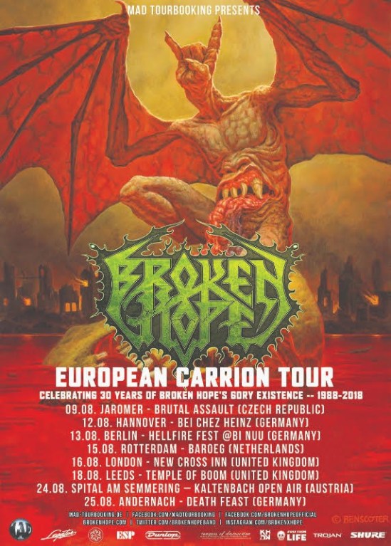 Broken Hope will be celebrating their 30th anniversary with a European/UK tour. You can see the initial dates for that run below.