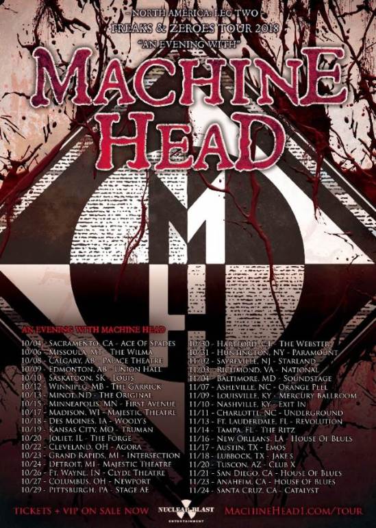 “We’re really stoked to be hitting the road in the states and our cannabis legalizing brothers up in Canada again. After the first tour in support of Catharsis hitting typical Machine Head strongholds like Chicago, Denver and Oakland, we’ve been really looking forward to doing a 2nd North American run that hits all the nooks and crannies of America, places that a lot of time get left off a traditional tour routing as they are smaller markets, and maybe route way off the the main highways that run through the states.