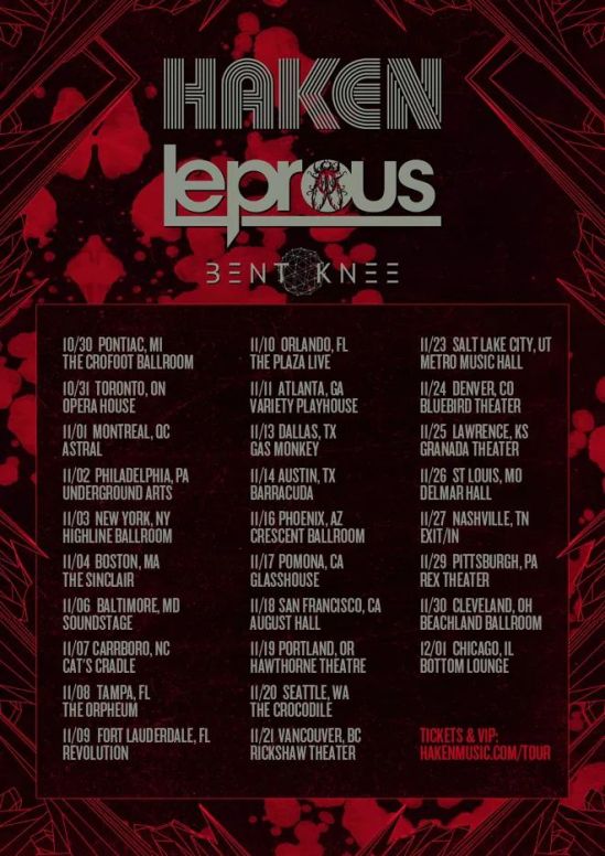 Haken and Leprous will be hitting the road on a North American tour together. Bent Knee will open the trek.