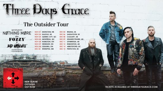 Three Days Grace have announced a Canadian tour with Nothing More. Fozzy and Bad Wolves will also perform on select dates.
