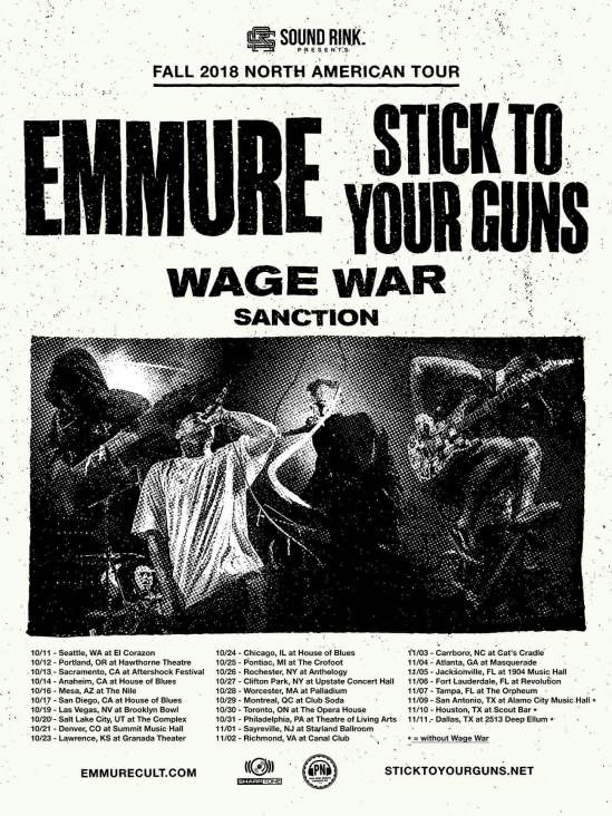 Emmure and Stick To Your Guns have announced a co-headlining tour. Wage War and Sanction will serve as support.