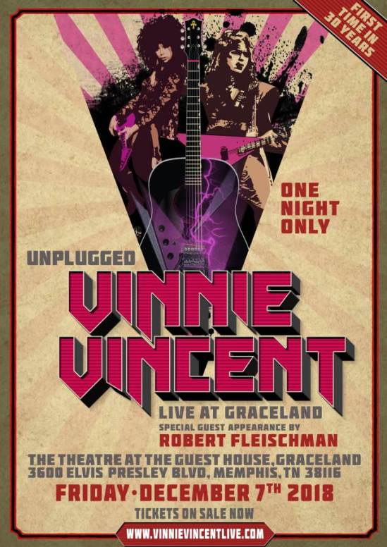Former KISS guitarist Vincent Cusano, aka Vinnie Vincent, has apparently filed two applications with the United States Patent and Trademark Office (USPTO) for the word mark “Vinnie Vincent’s Kiss” to protect its use for entertainment purposes, specifically “live performances by internationally known musical artist and guitarist Vinnie Vincent.” It also covers goods and services including “compact discs featuring music.” Vinnie Vincent will play his first show in 30 years on December 7 at Graceland in Memphis, Tennessee. He is expected to perform acoustic versions of KISS and Vinnie Vincent Invasion songs, with a special guest appearance by Robert Fleischman.