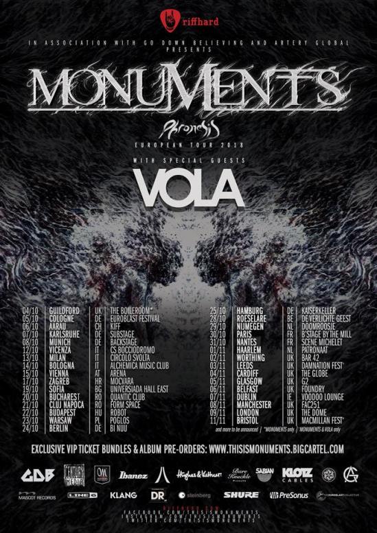 Monuments have announced a European/UK tour with VOLA. The band will be out in support of their new album “Phronesis,” which will be available on October 5.