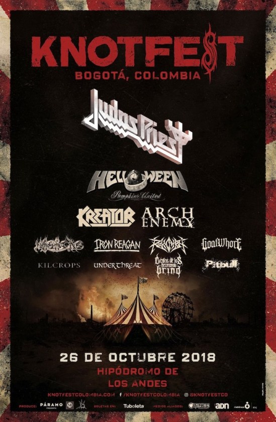 Slipknot’s Knotfest will be coming to Bogota, Colombia for the first time ever this year. The event will take place on October 26 at the Hipodromo de Los Andes and it will feature: Judas Priest, Helloween, Kreator, Arch Enemy, Massacre, Iron Reagan, Revocation, Goatwhore, Kilcrops, Underthreat, Cuentos de los Hermanos Grind, and Pitbull.