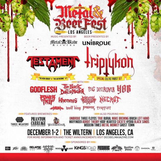 December 1: Testament (performing “The Gathering” and “The New Order“), The Black Dahlia Murder, Pig Destroyer, Khemmis, Necrot, Pounder, and Trappist.