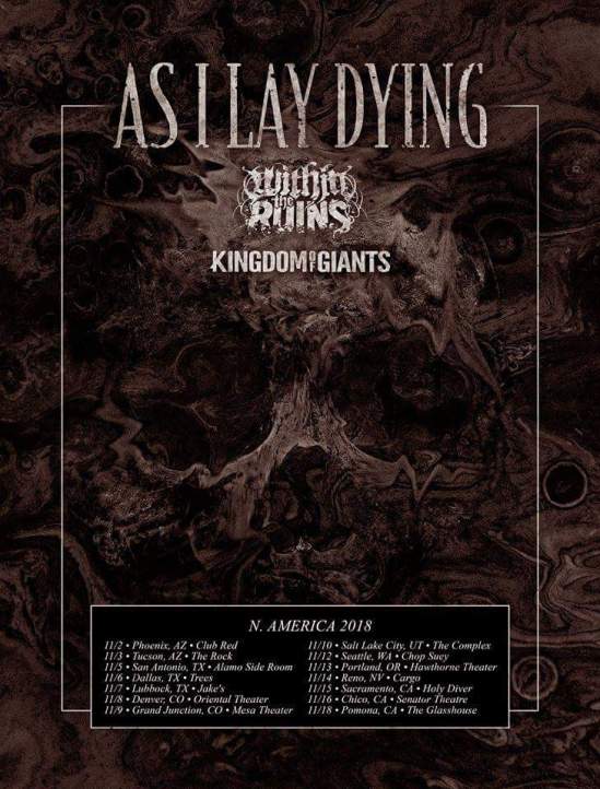 Within The Ruins and Kingdom Of Giants have been added to As I Lay Dying’s fall U.S. tour. This will be the band’s first full tour since Tim Lambesis was released from prison in December 2016 after infamously trying to hire a hitman to kill his wife in 2013.